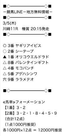 大井11Rの無料予想で2馬券種(ワイド・三連複)的中