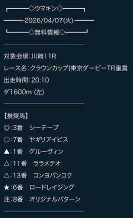 自分はこういうのを見ると、次の障害戦や条件戦で「また無料予想を見たい」と思います。