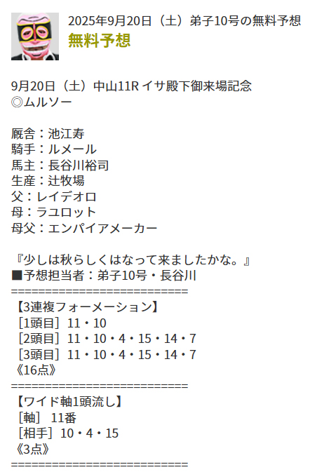 3連休最終日の無料予想は俺の競馬予想に決めました!